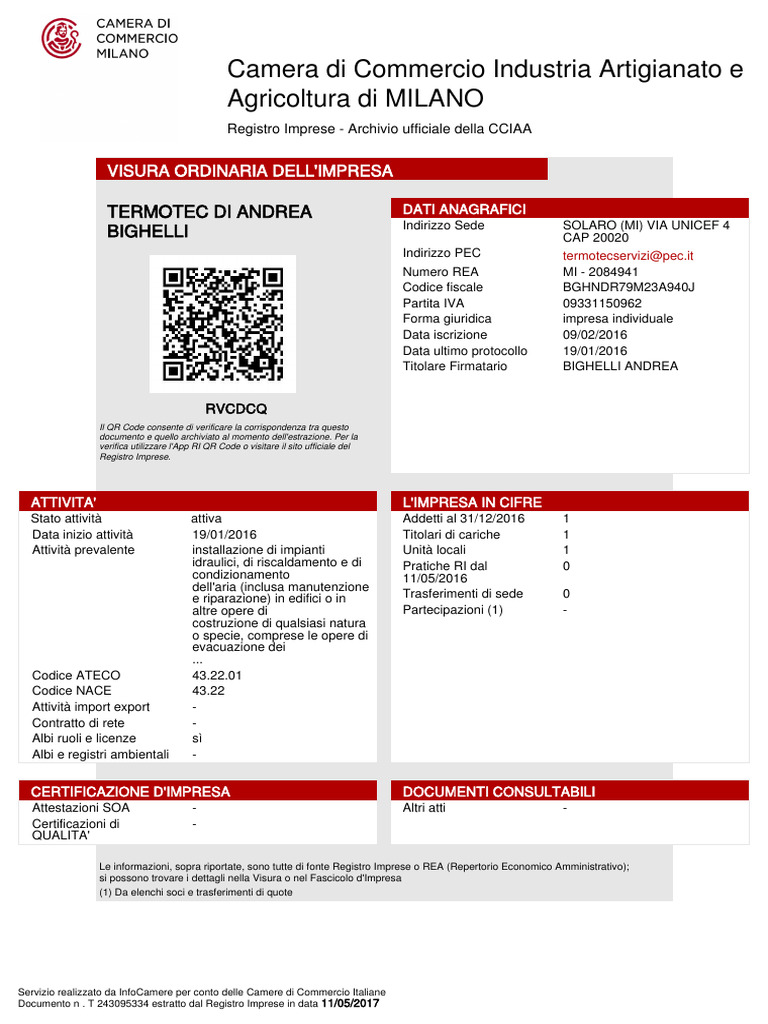 Archivio ufficiale della CCIAA TERMOTEC DI ANDREA BIGHELLI