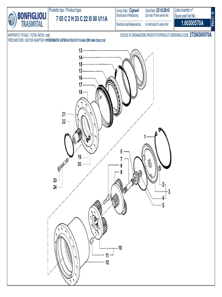 RAPPORTO TOTALE / TOTAL RATIO: 1:22 CODICE DI ORDINAZIONE PRODOTTO/PRODUCT ORDERING CODE: 2T260300570A