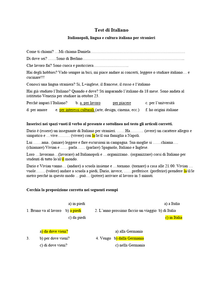 di origine. Dopo l’università …ha studiato.. (studiare) Italiano per stranieri a Siena e a Venezia.