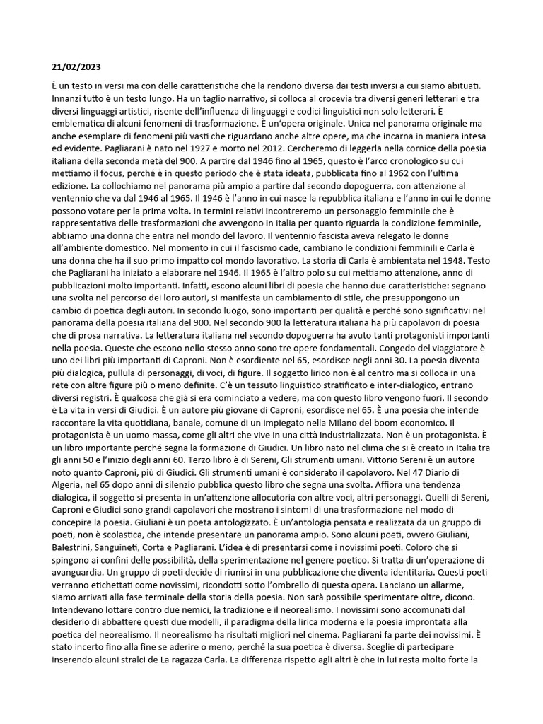 ed evidente. Pagliarani è nato nel 1927 e morto nel 2012. Cercheremo di leggerla nella cornice della poesia