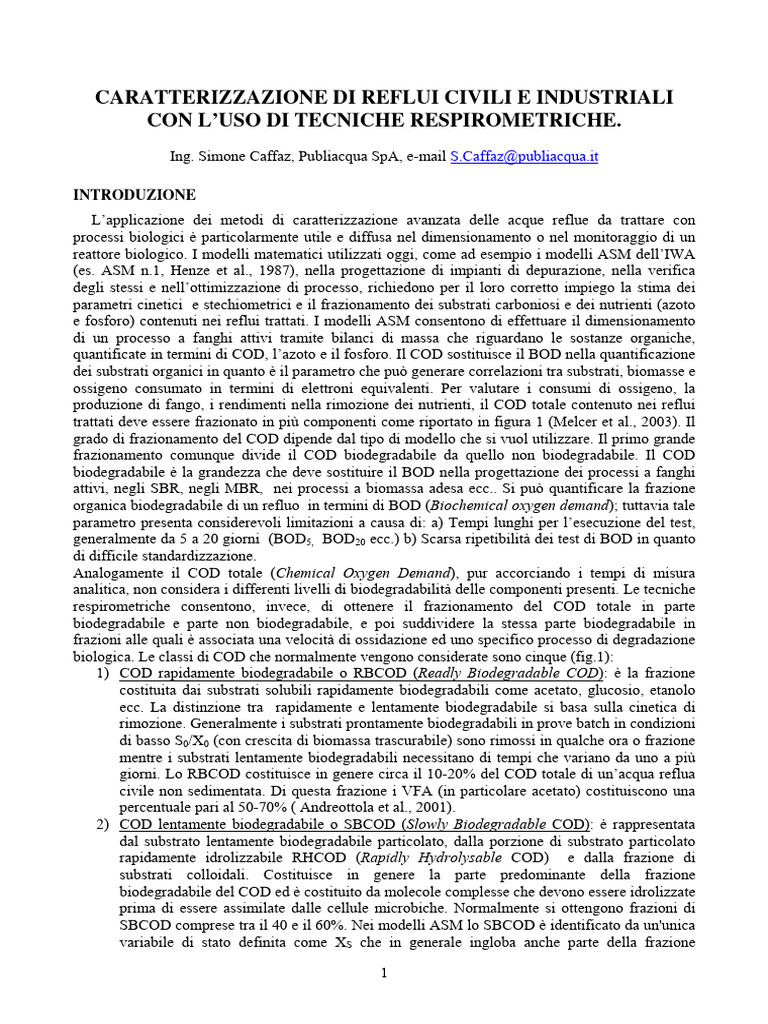 - Ziglio G., Andreottola G.,Foladori P., Ragazzi M. (2001), Experimental validation of a