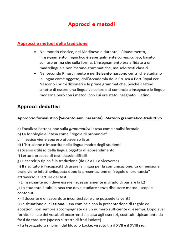 Approccio formalistico (Seicento-anni Sessanta) Metodo grammatico-traduttivo
