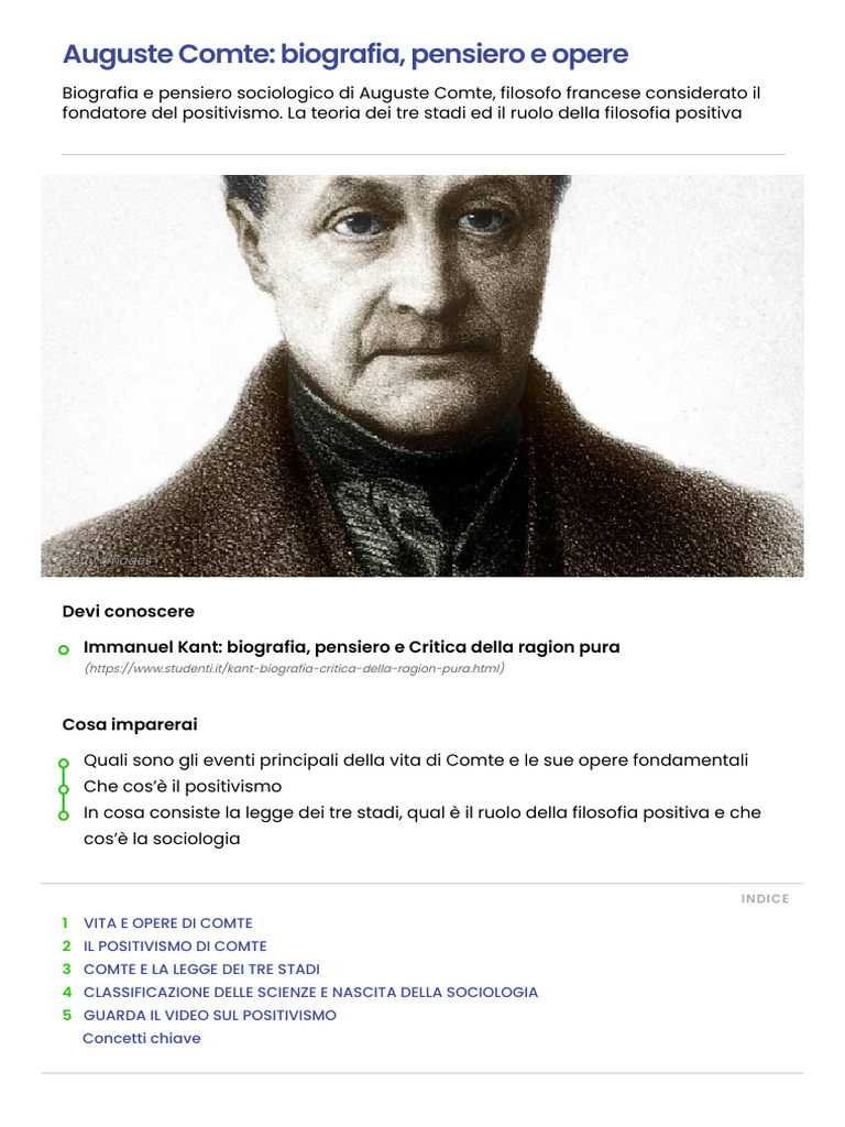 Comte è il padre del positivismo, ovvero quella corrente filosofica che, dalla