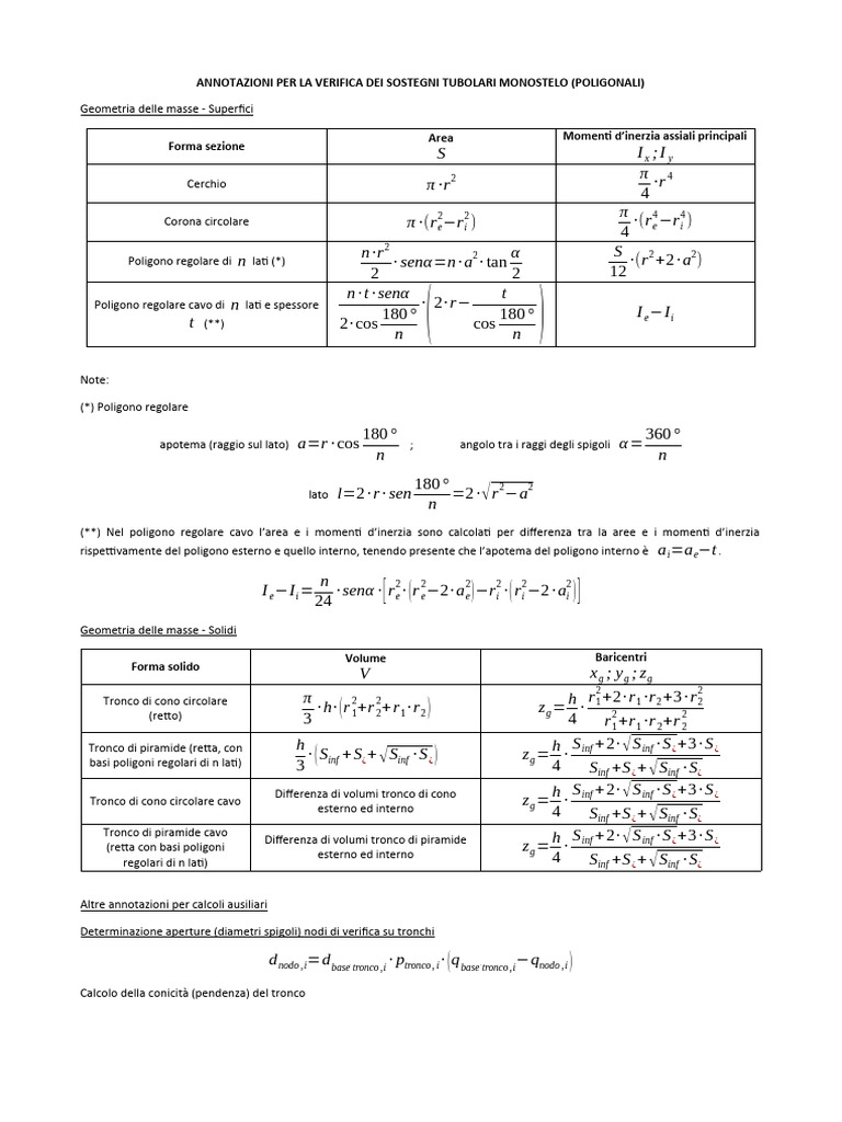 ANNOTAZIONI PER LA VERIFICA DEI SOSTEGNI TUBOLARI MONOSTELO (POLIGONALI)