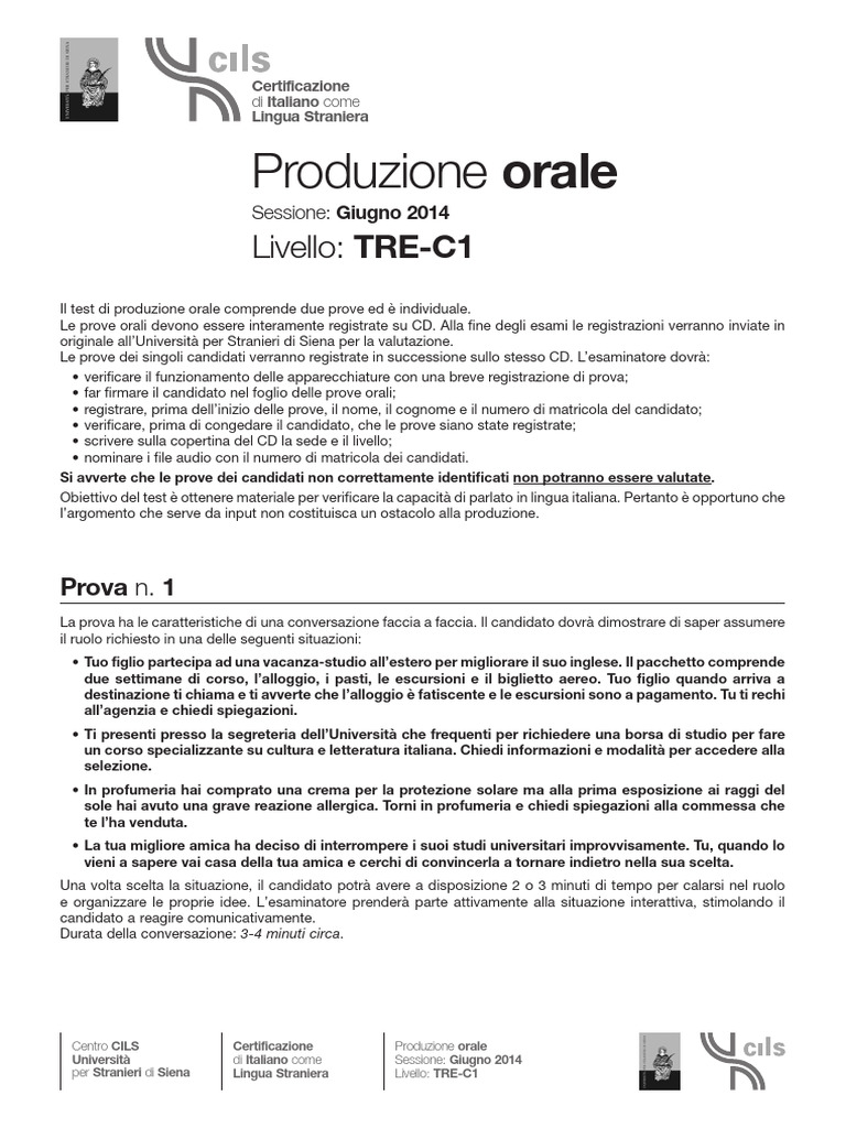 Centro CILS Certificazione Produzione orale