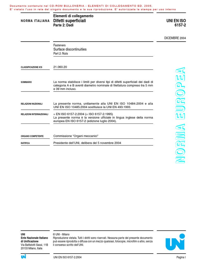 UNI EN ISO 6157-2:2004 Pagina I