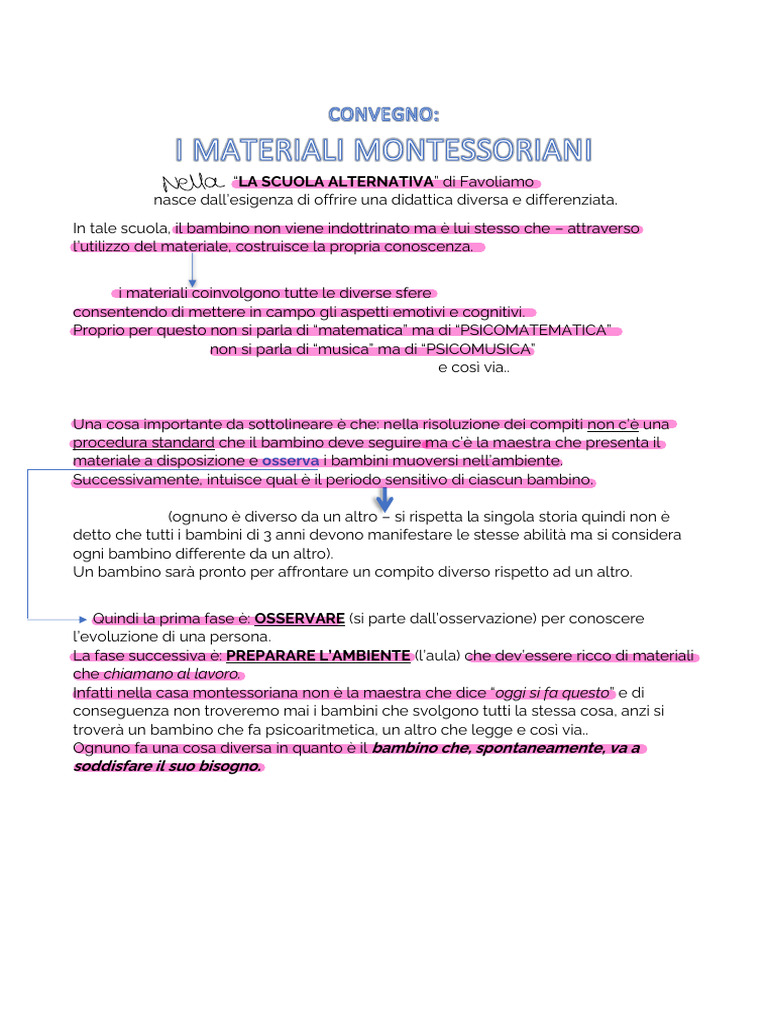 rosa e così via (quindi se è già impegnato quel materiale, il bambino dovrà aspettare