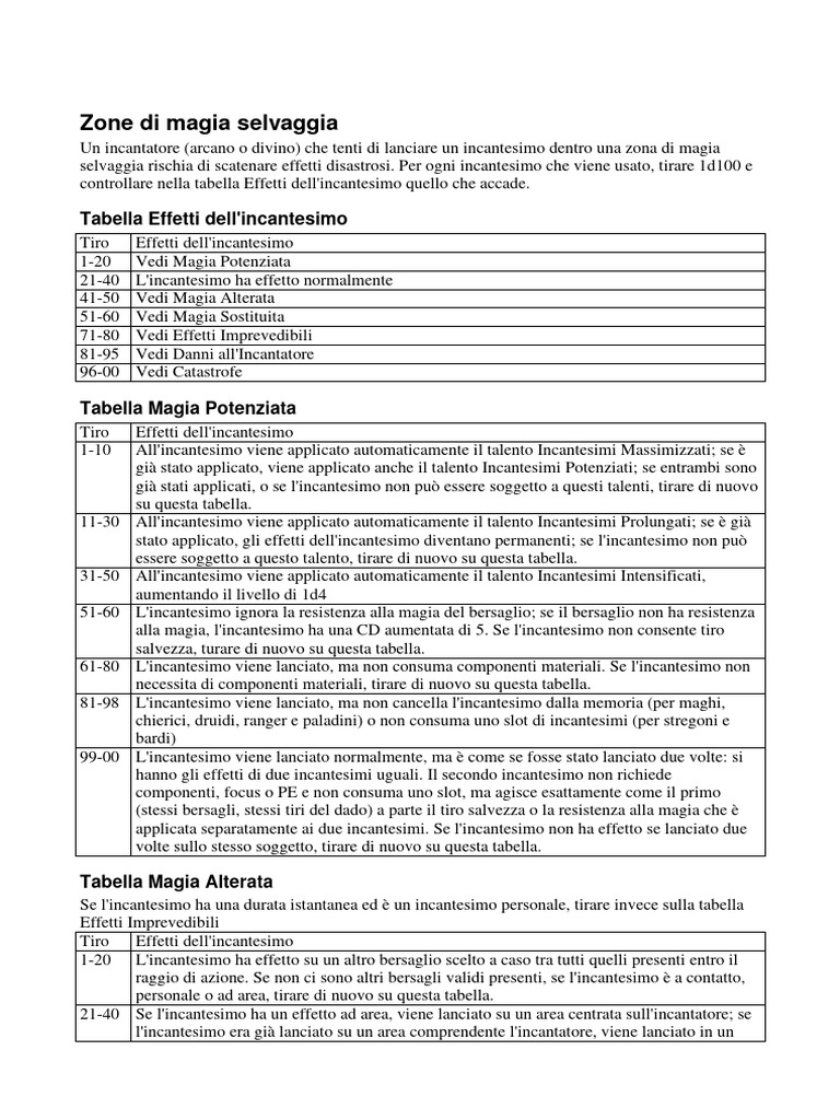selvaggia rischia di scatenare effetti disastrosi. Per ogni incantesimo che viene usato, tirare 1d100 e