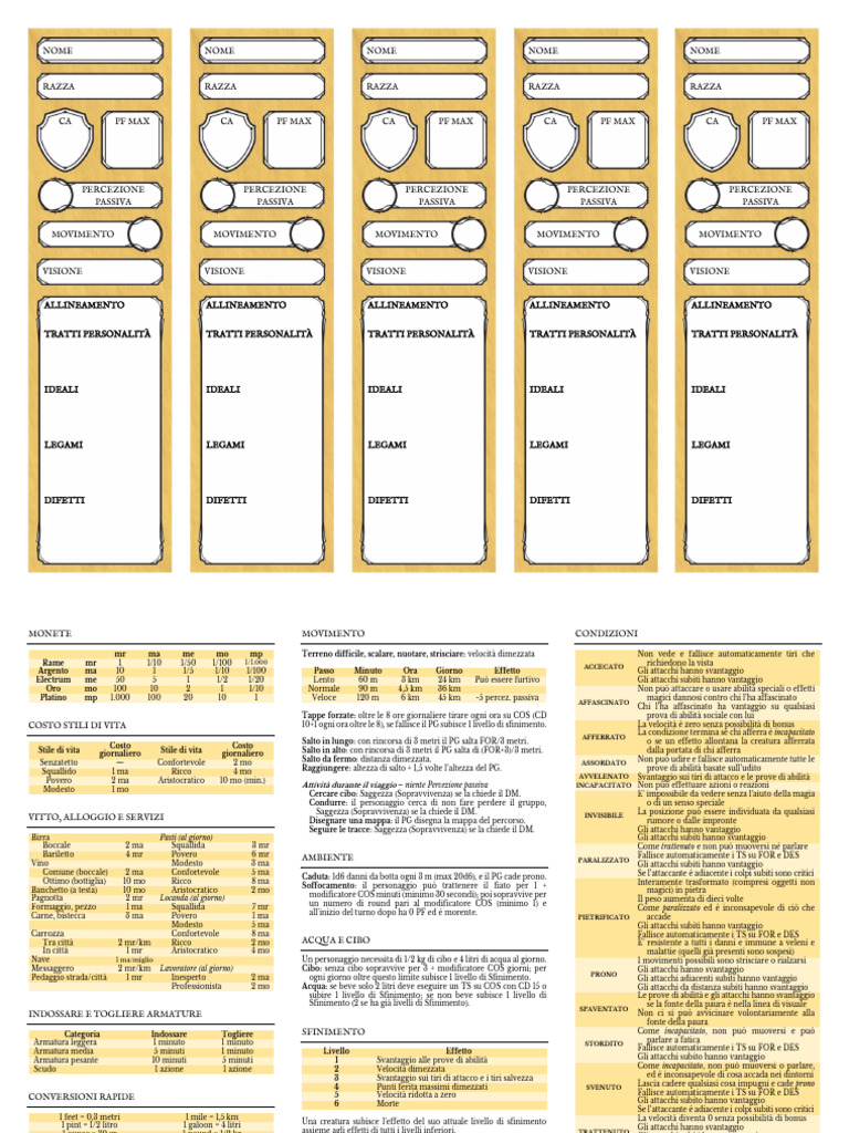 Messaggero 2 mr/km Lavoratore (al giorno) Cibo: senza cibo sopravvive per 3 + modificatore COS giorni; per Gli attacchi hanno svantaggio