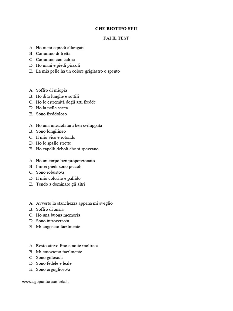 Il punteggio più alto indica qual è il tuo biotipo predominante. Non stupirti se trovi dei punteggi che