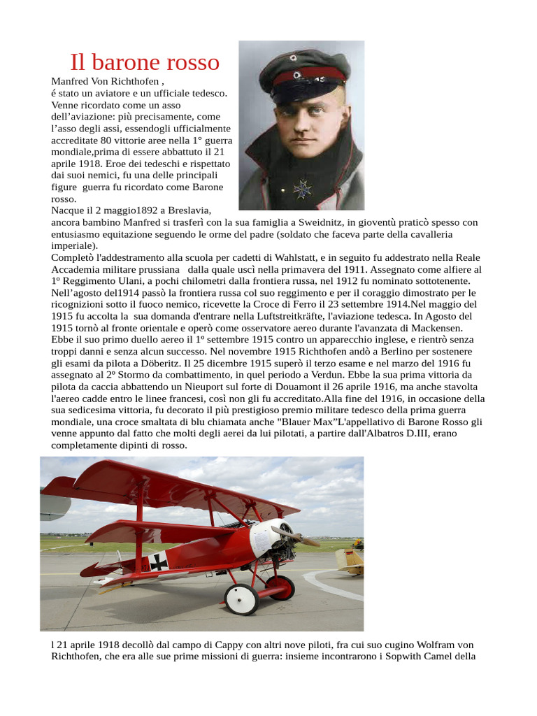 il seguente messaggio: "AL CORPO D'AVIAZIONE TEDESCO. Il capitano barone Manfred von