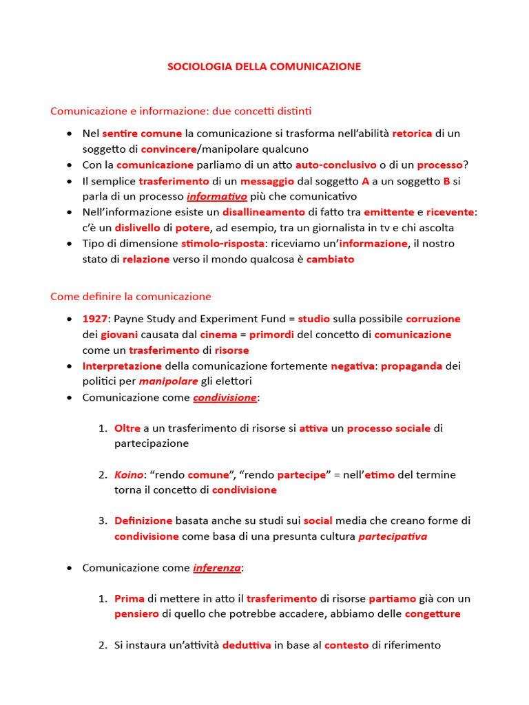 SOCIOLOGIA DELLA COMUNICAZIONE