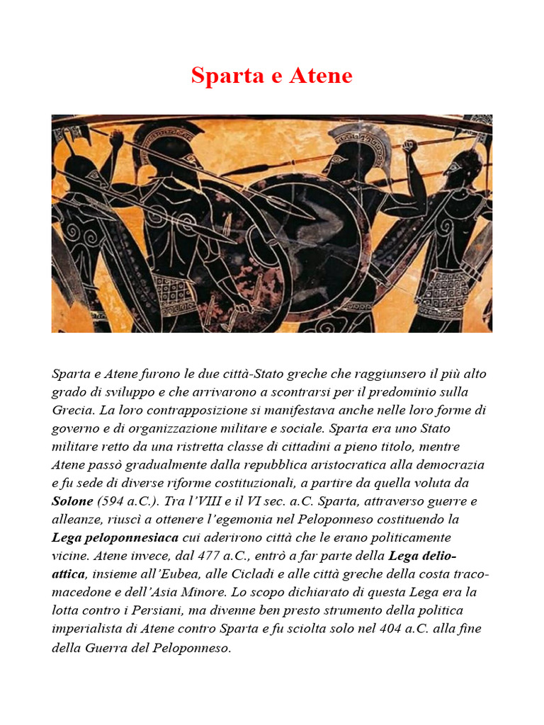 Sparta e Atene furono le due città-Stato greche che raggiunsero il più alto