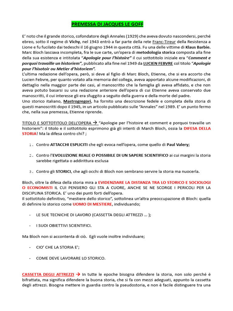 della sua esistenza e intitolata “Apologie pour l’histoire” il cui sottotitolo iniziale era “Comment e
