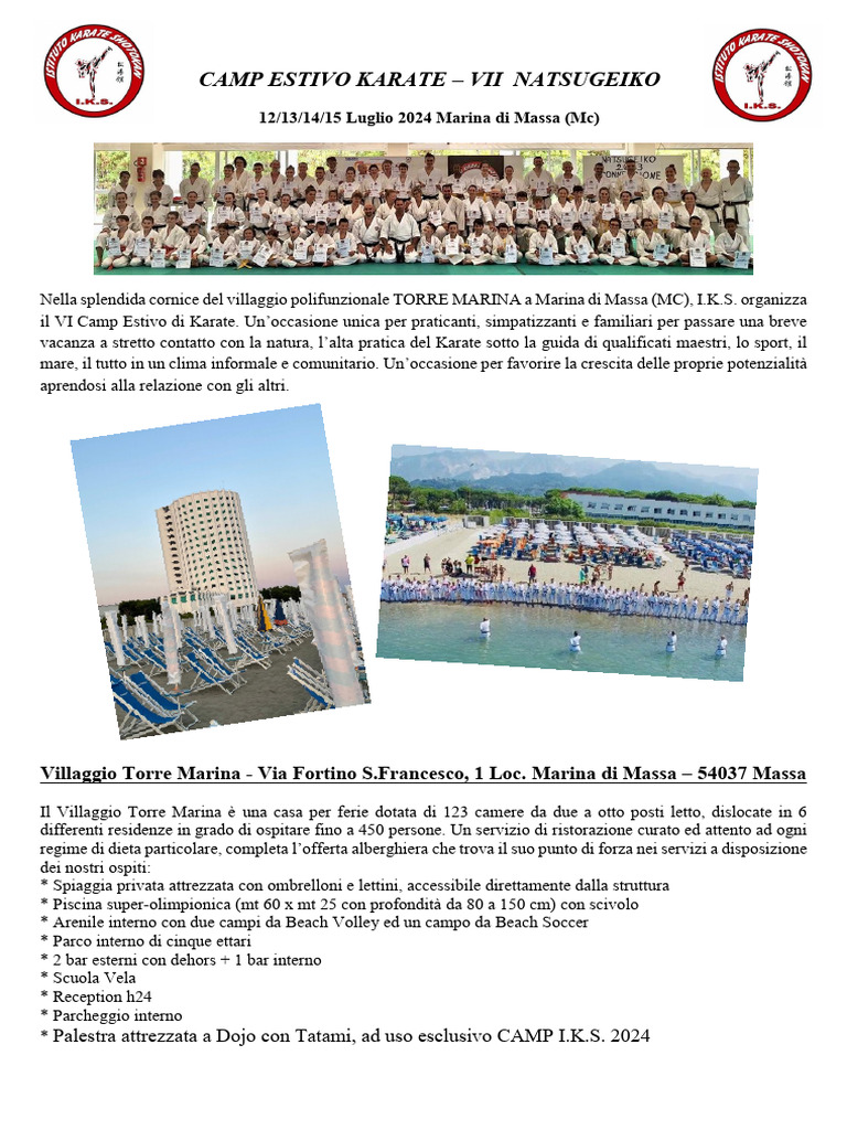 Nella splendida cornice del villaggio polifunzionale TORRE MARINA a Marina di Massa (MC), I.K.S. organizza