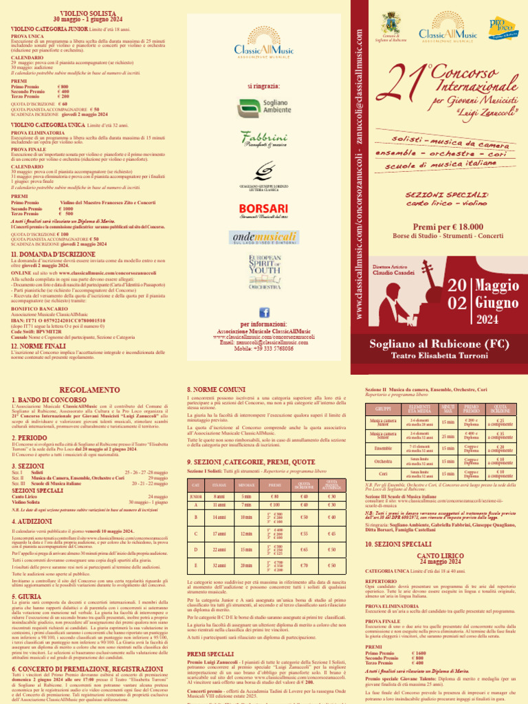 Violino Solista 30 maggio - 1 giugno consultare il sito: [Link]/concorsozanuccoli/sezione-iii-
