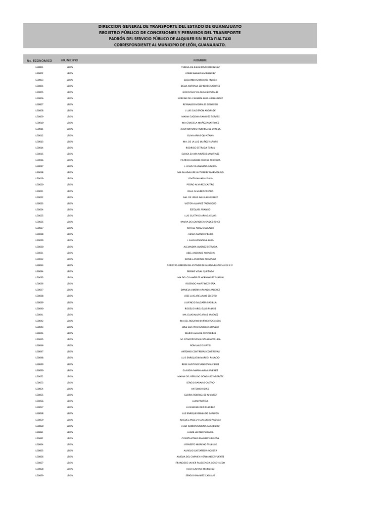 LE0033 LEON TAXISTAS UNIDOS DEL ESTADO DE GUANAJUATO S A DE C V