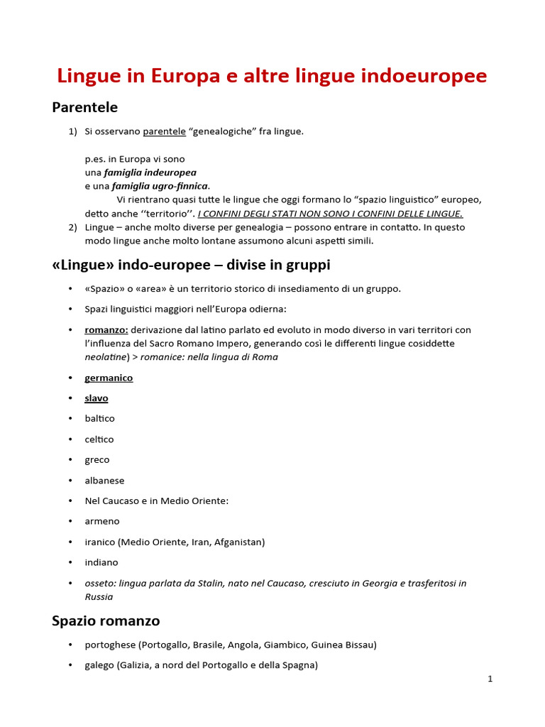 1) Si osservano parentele “genealogiche” fra lingue.