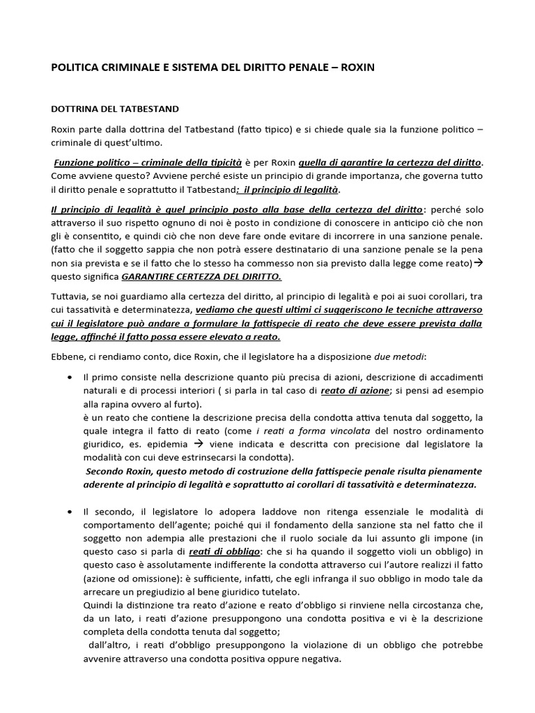 giuridicamente validi quelli che sono gli scopi di politica criminale, anzi, Roxin arriva a dimostrare