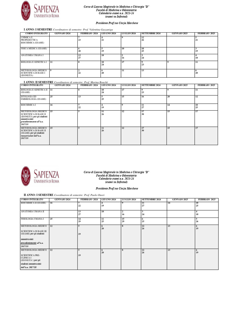 I ANNO: II SEMESTRE Coordinatore di semestre: Prof. Marina Bouchè