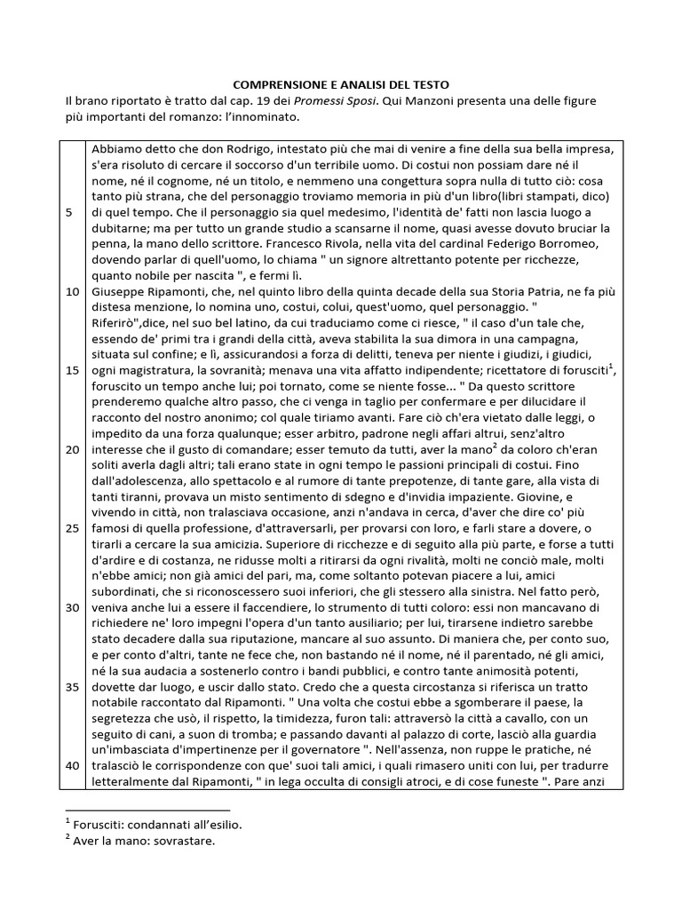 Il brano riportato è tratto dal cap. 19 dei Promessi Sposi. Qui Manzoni presenta una delle figure