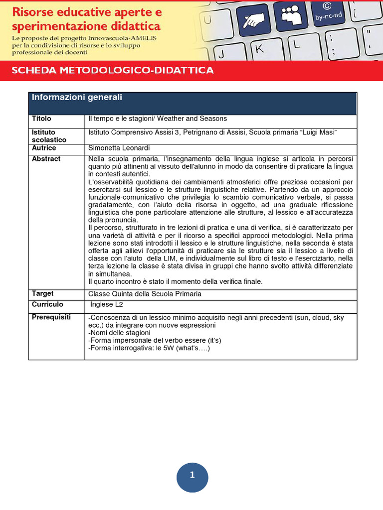 Prerequisiti -Conoscenza di un lessico minimo acquisito negli anni precedenti (sun, cloud, sky