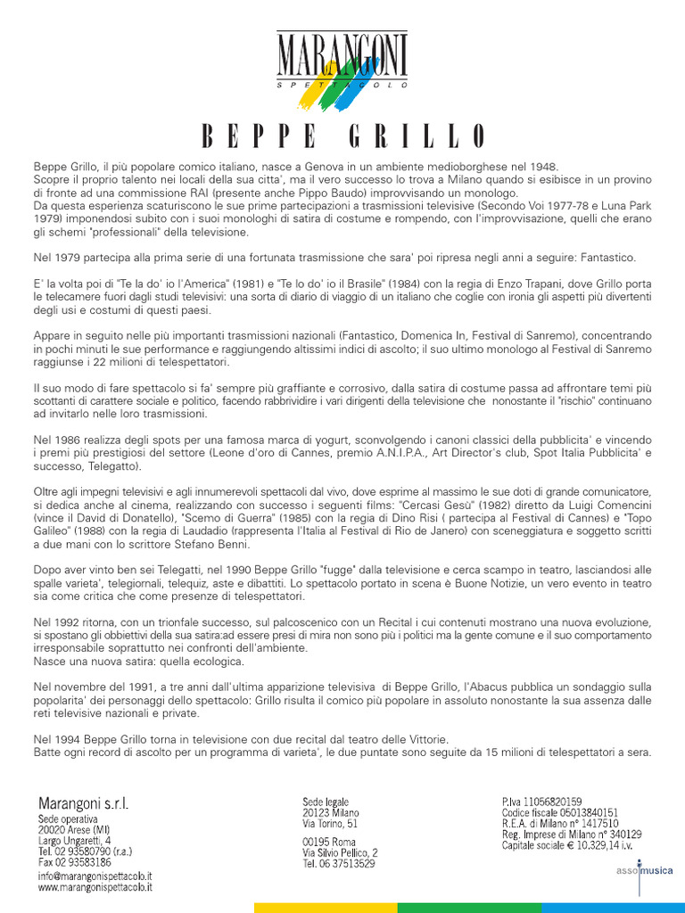 Beppe Grillo, il più popolare comico italiano, nasce a Genova in un ambiente medioborghese nel 1948.