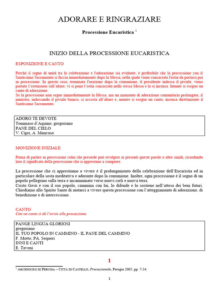 ARCIDIOCESI DI PERUGIA – CITTÀ DI CASTELLO, Processionale, Perugia 2005, pp. 7-24.