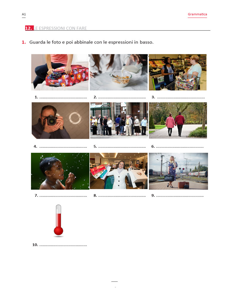 1. Guarda le foto e poi abbinale con le espressioni in basso.