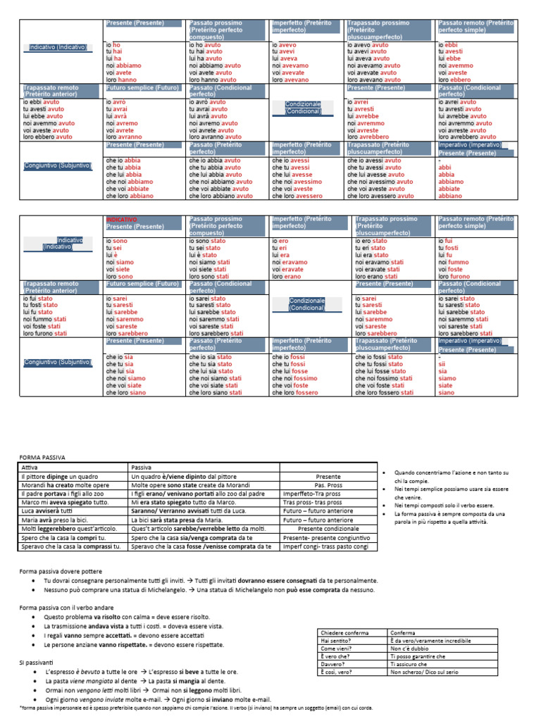 Indicativo (Indicativo) io ho io ho avuto io avevo io avevo avuto io ebbi