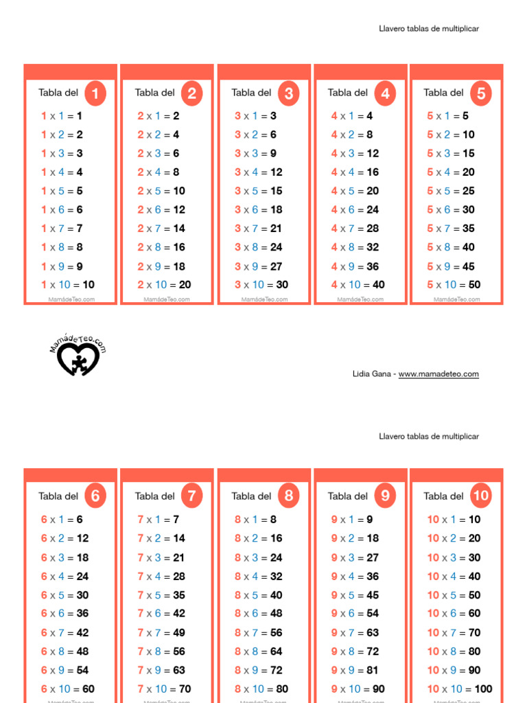 Tabla del 6 Tabla del 7 Tabla del 8 Tabla del 9 Tabla del 10
