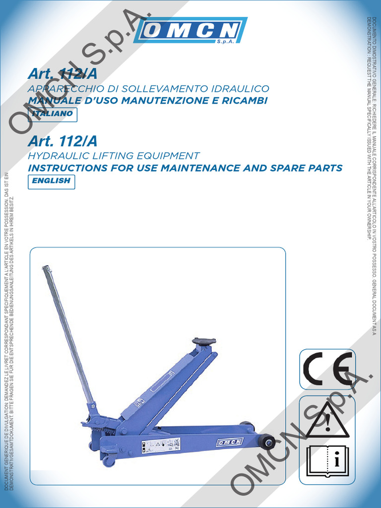 DOCUMENTO DIMOSTRATIVO GENERALE: RICHIEDERE IL MANUALE CORRISPONDENTE ALL’ARTICOLO IN VOSTRO POSSESSO. GENERAL DOCUMENT AS A