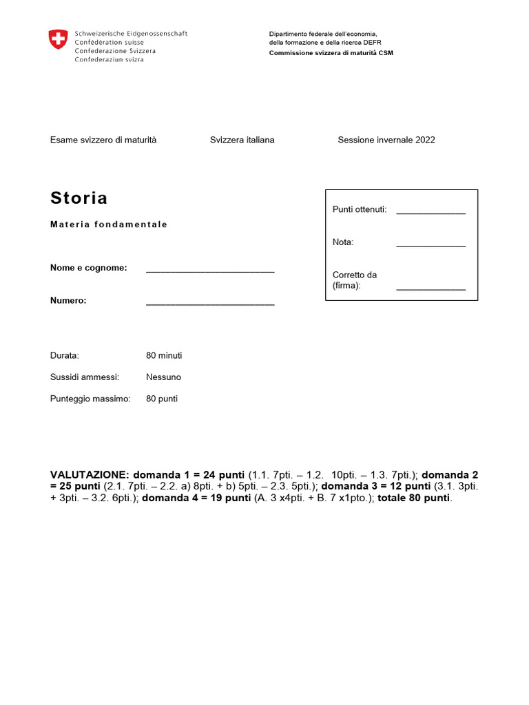 Esame svizzero di maturità Svizzera italiana Sessione invernale 2022