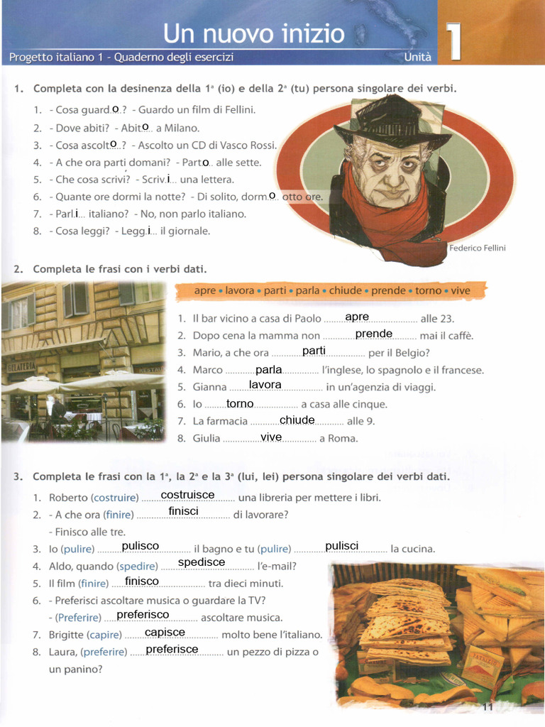 (1) a) prendi (2) a) preferisce