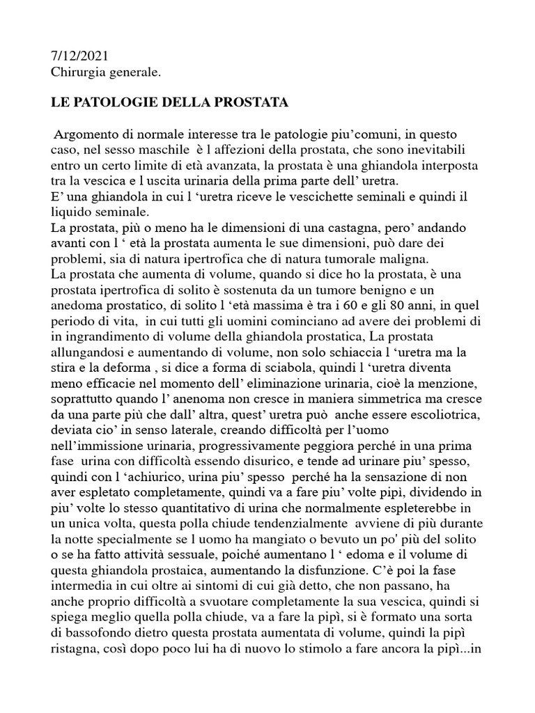 caso, nel sesso maschile è l affezioni della prostata, che sono inevitabili