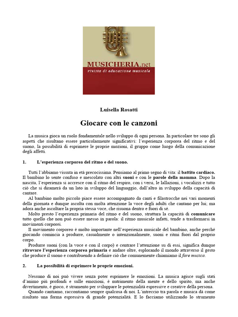 musicalità di ciascuno e rafforzare il legame affettivo tra adulto e bambino.