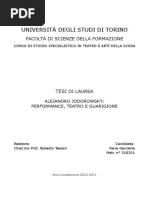 Alla luce di queste prime considerazioni e, visto che questo un viaggio andata e ritorno, vediamo ora come questo sentimento di partecipazione e di sacralit non si possa ritrovare solo nei rituali primitivi, ma come possa essere vissuto e raccontato anche in spazi e tempi molto distanti tra loro. Riporto qui un passo tratto da "Cristo si fermato a Eboli" scritto da Carlo Levi sulla sua esperienza in Lucania, dove, nel 1935 era stato confinato: "In paese ci aspettava una straordinaria novit: era arrivata allora, su un carro trainato da un cavallo magro , una compagnia di attori Non esistevano sale o saloni che potessero servire di teatro: si era scelto una specie di cantina o di grotta semi-interrata, e ci avevano portato delle panche, dalla scuola, sul pavimento di terra battuta Si recitava La fiaccola sotto il moggio di Gabriele d'Annunzio. Naturalmente mi aspettavo una gran noia da questo dramma retorico, recitato da attori inesperti, e aspettavo il piacere della serata solt anto dal suo carattere di distrazione e novit. Ma le cose andarono diversamente. Quelle donne divine, dai grandi occhi vuoti e dai gesti pieni di una passione fissata e immobile, come le statue, recitavano superbamente; e, su quel palco largo quattr o passi, sembravano gigantesche Mi accorsi subito che questa sorta di purificazione, pi ancora che alle attrici, era dovuta al pubblico. I contadini partecipavano alla vicenda con interesse vivissimo Gli spiriti e i demoni che passano nella tragedia erano gli stessi spiriti e demoni che abitano queste grotte e queste argille e sotto quell'onda di inutili parole riappariva, per i contadini , la Morte vera e il Destino". Leggendo questo passo si pu pensare di avere la prova di come possano essere speciali questi momenti, momenti in cui ci si sente davvero dentro ad un flusso e tanto sono universali che ritroviamo in Levi, mentre parla dei contadini lucani, le stesse parole che potremmo trovare in Artaud mentre parla del teatro della crudelt: Morte vera e destino. Partendo da queste risonanze che si muovono da un testo ad un altro, il lavoro che cercher di portare avanti sar quello di ritrovare una continua linea concettuale che leghi due studiosi del tutto diversi tra loro, ma che, nell'ambi to delle loro diverse discipline, hanno voluto portare uno sguardo verso il rito e il teatro "diverso dall'analisi di ci che nel rito da tutti riconosciuto, verso quel le forze celate e nascoste che in esso prendono corpo". Uno sguardo che cerca il complesso e non si limita alla soluzione pi semplice. Il primo studioso che prender in considerazione sar l'antropologo Victor Turner ed, in particolare, il suo testo "Dal rito al teatro" del 1982, ed in secondo luogo mi concentrer sul pensiero di Antonin Artaud, soprattutto basandomi sul saggio "Teatro e corpo glorioso" scritto da Umberto Artioli e Francesco Bartali e sul testo scritto da Artaud ed uscito nel 1964 "Il teatro e il suo doppio".