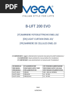 Lineari Adiacenti - Incrociati 6 - 15 - 20 mt Fasci Lineari - Adiacenti Incrociati - N.B. le distanze per Adiacenti ed Incrociati variano in funzione dellaltezza della barriera e del numero dei fasci, per una corretta applicazione vedi N.B. del paragrafo Procedura di Allineamento e Taratura a pag. 16 del manuale. 950 nm Ottica o Filo (Raccomandata) mt. 100 mt. 60 90% Programmabile Programmabile - Regolabile Programmabile / Comando Remoto Programmabile 701000ms Contatto in scambio NC/NA NC SI 180 orizzontale - 30 verticale 11.5V - 14.5Vcc 110 mA 110 mA SI da -20+55C 35W +35W 24Vca IP54 Su richiesta 120 mA 120 mA 130 mA 130 mA