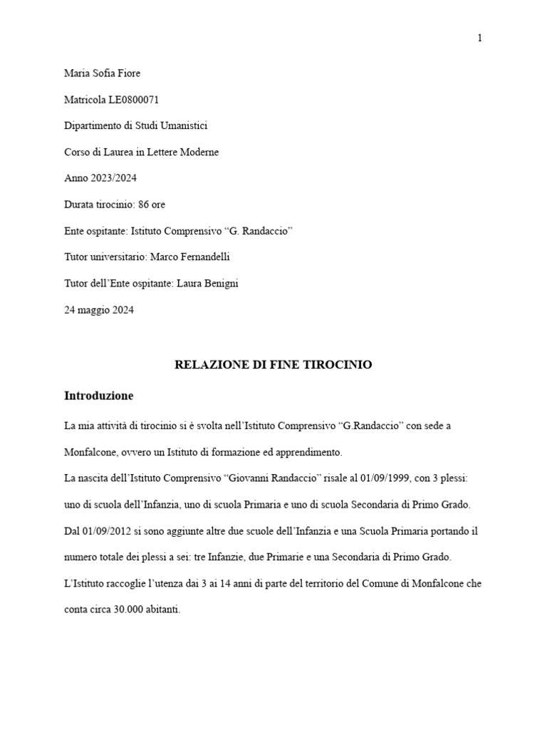 RELAZIONE DI FINE TIROCINIO