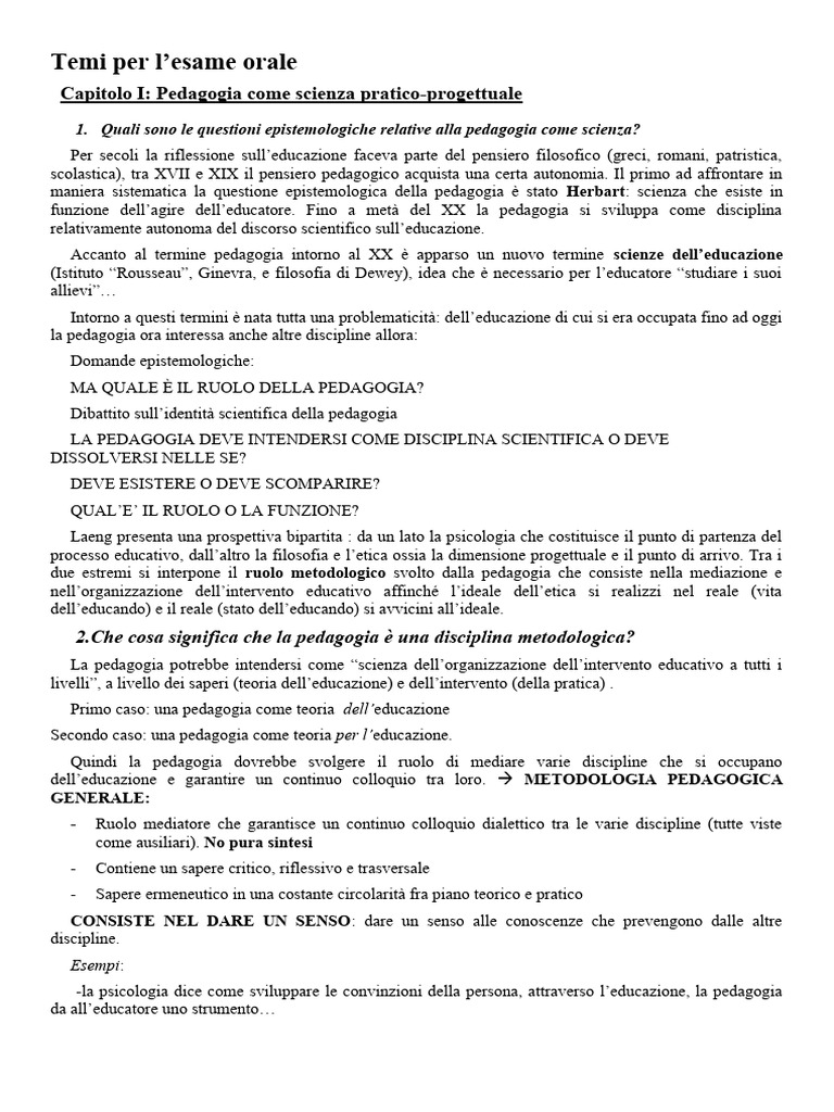 Capitolo I: Pedagogia come scienza pratico-progettuale