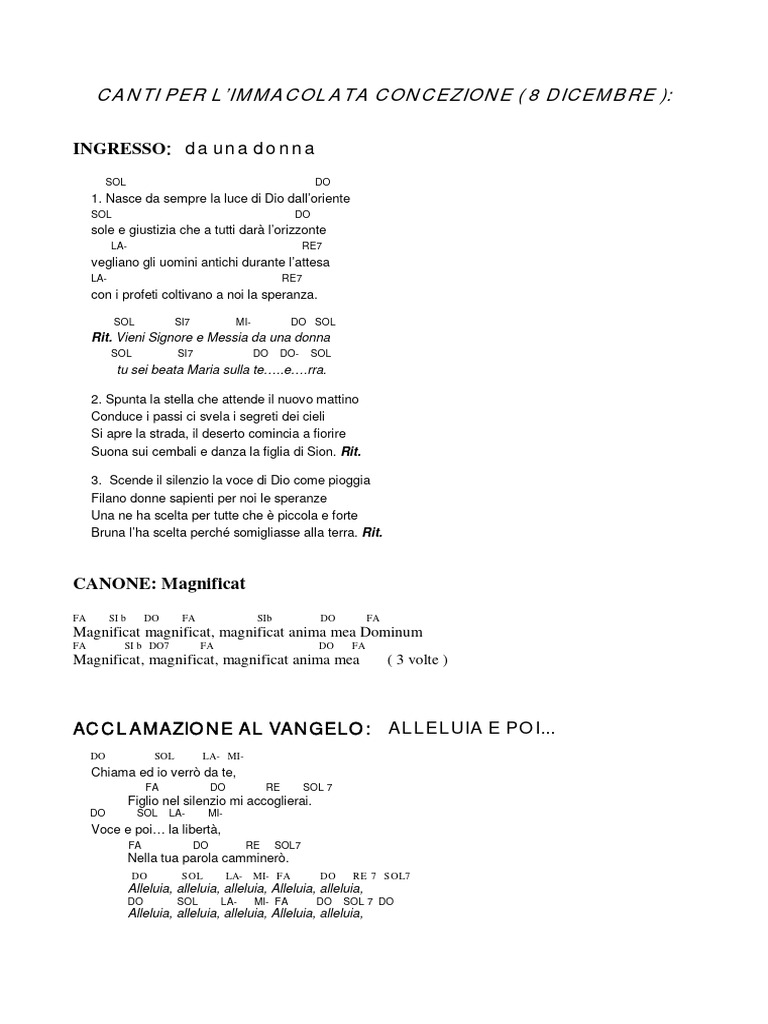 CANTI PER L’IMMACOLATA CONCEZIONE ( 8 DICEMBRE ):