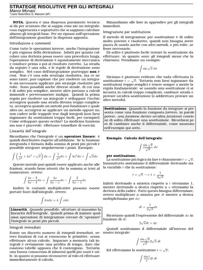 dell’integrazione guardare la dispensa apposita. Il metodo di integrazione per sostituzione è di solito
