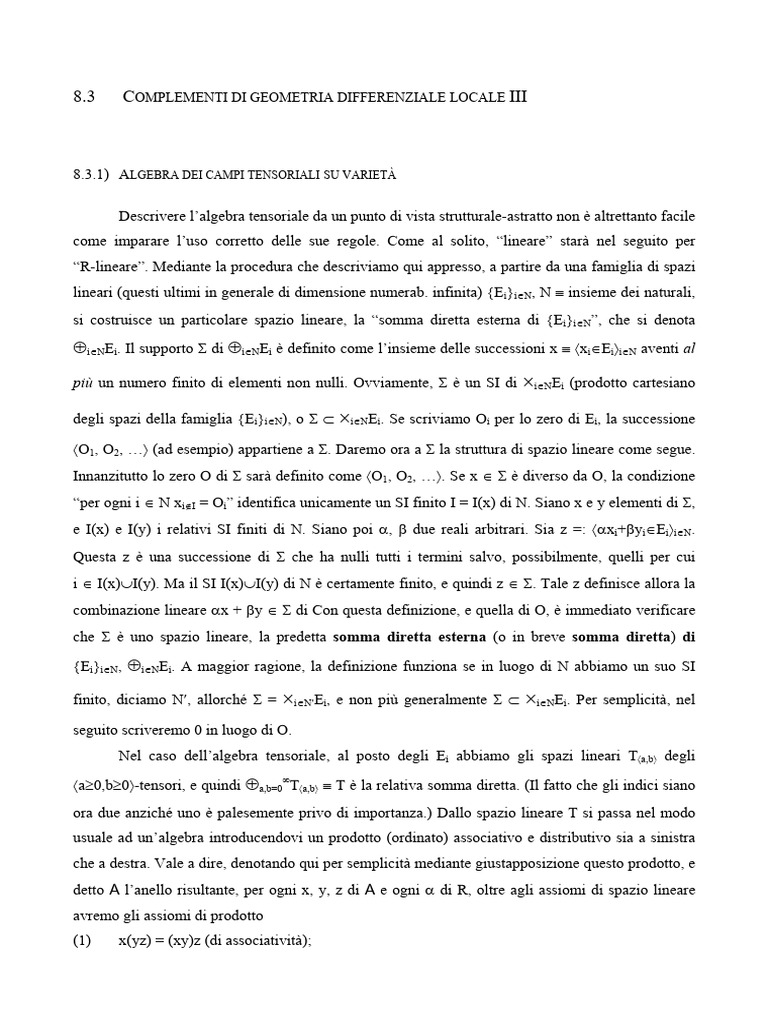 8.3.1) ALGEBRA DEI CAMPI TENSORIALI SU VARIETÀ
