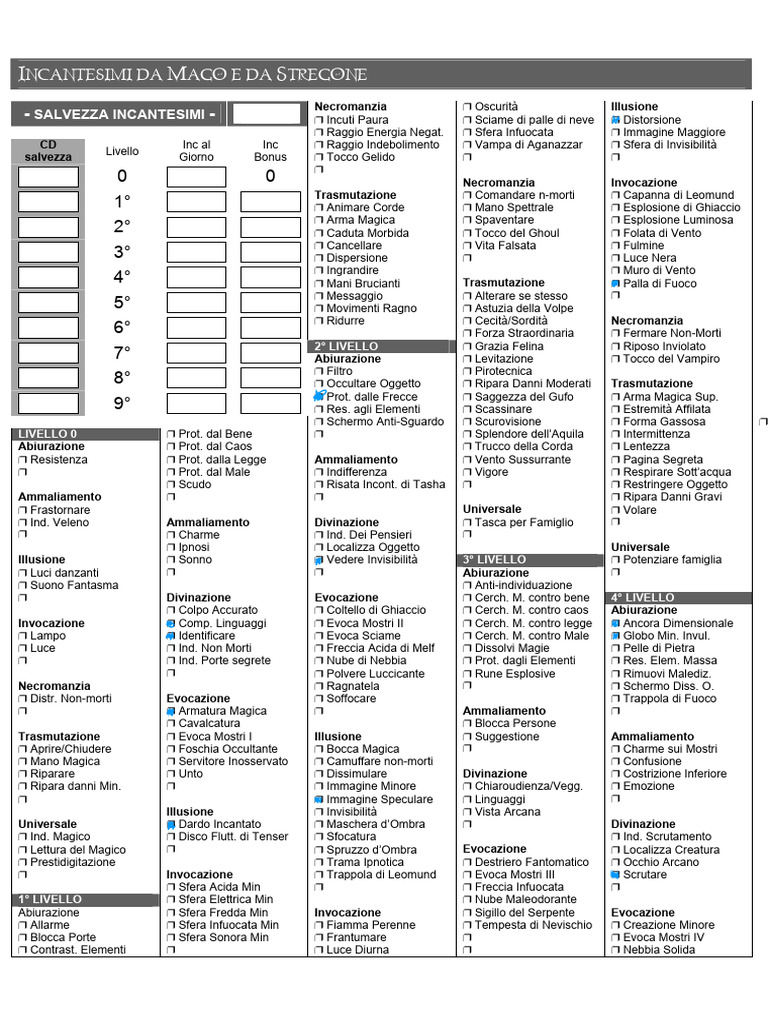 ” Invocazione ” Trappola di Leomund ” Evoca Mostri III ” Scrutare