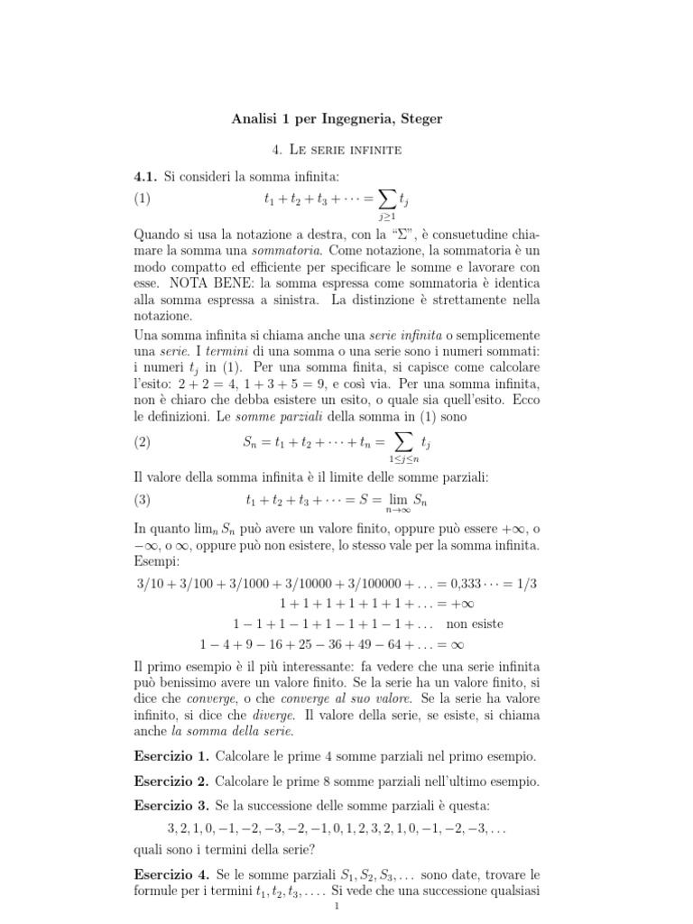Esercizio 1. Calcolare le prime 4 somme parziali nel primo esempio.