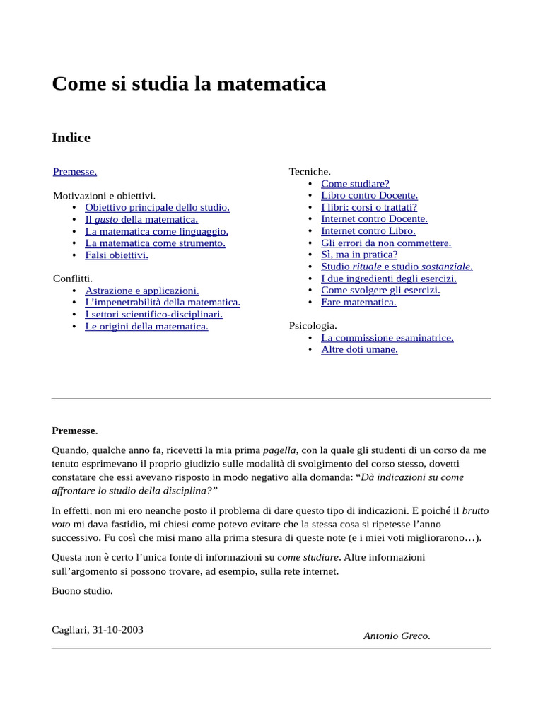 studio. Purtroppo, i libri di matematica spesso scarseggiano di informazioni al riguardo,