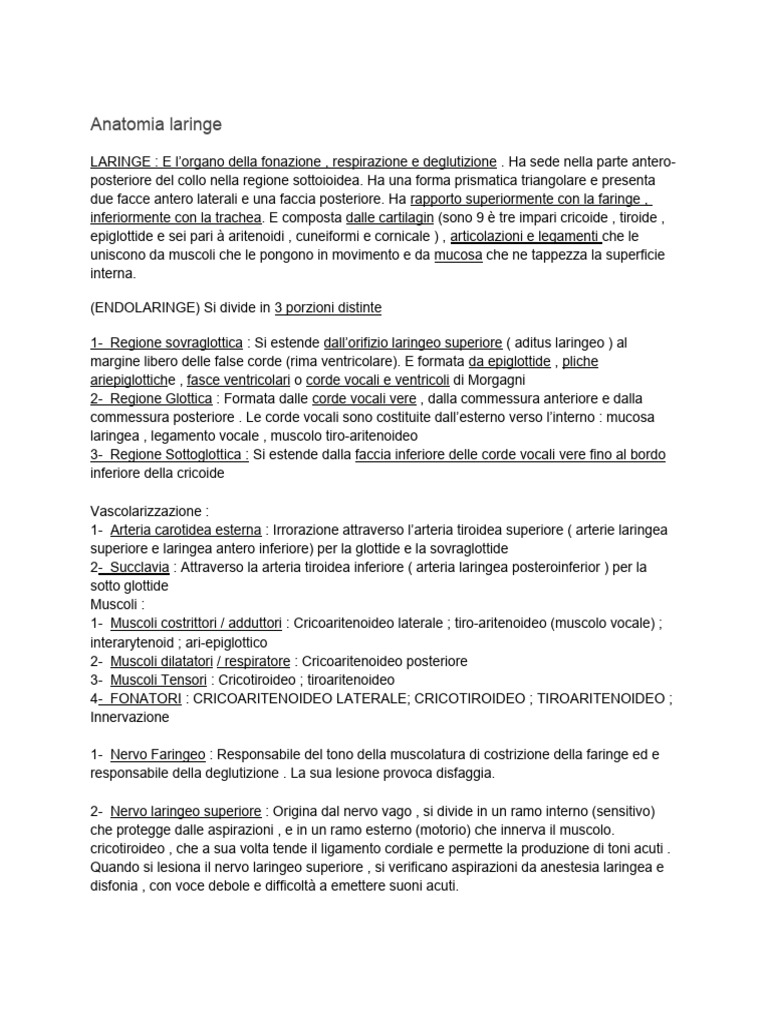 LARINGE : E l’organo della fonazione , respirazione e deglutizione . Ha sede nella parte antero-
