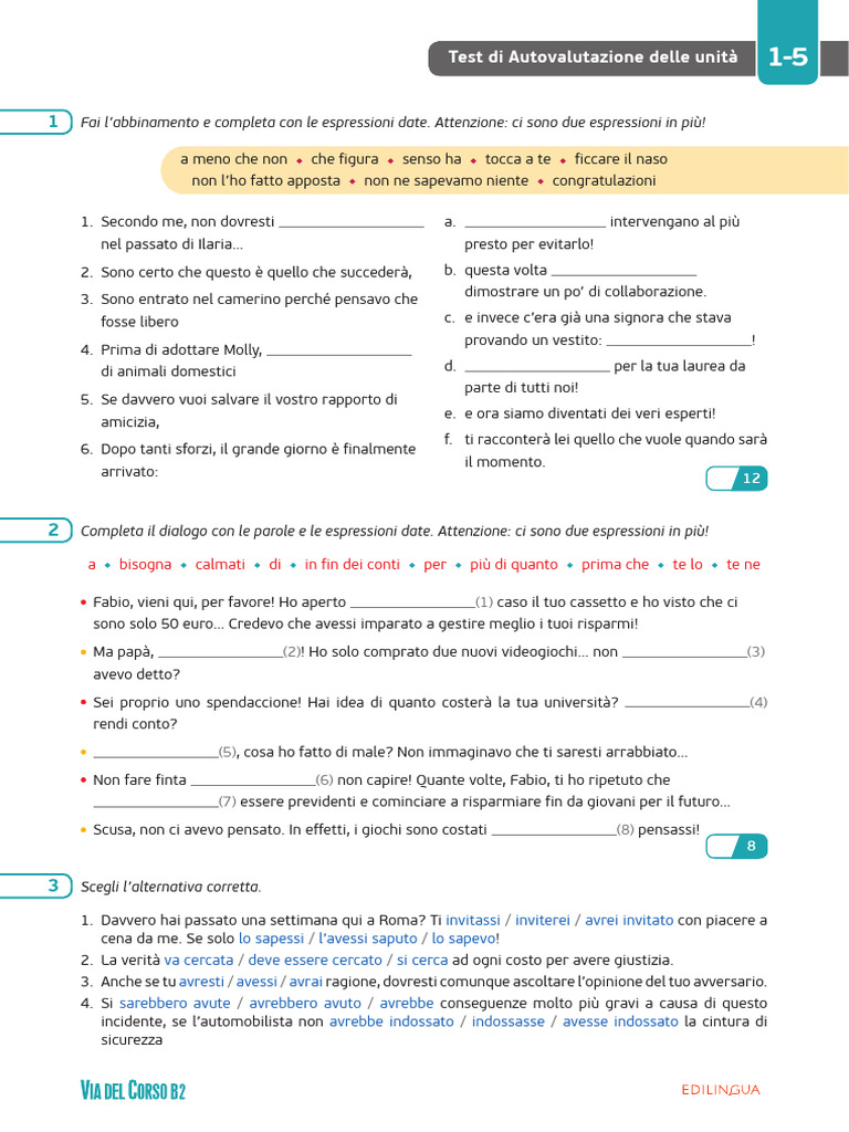 1 Fai l’abbinamento e completa con le espressioni date. Attenzione: ci sono due espressioni in più!