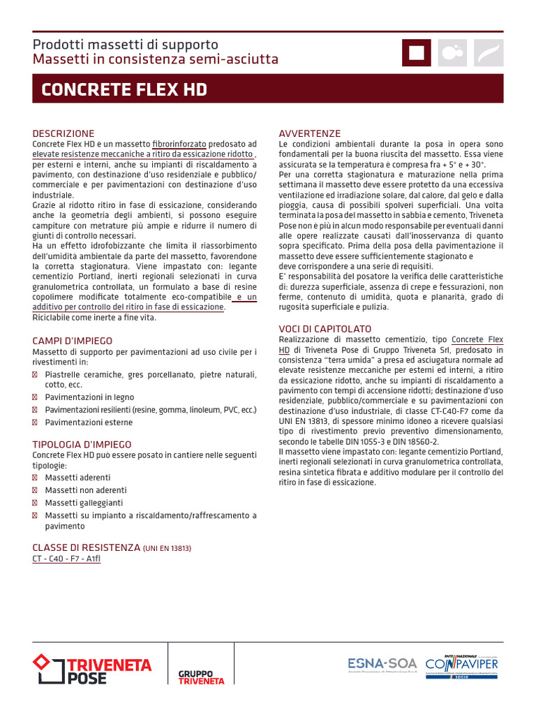 Concrete Flex HD può essere posato in cantiere nelle seguenti Il massetto viene impastato con: legante cementizio Portland,