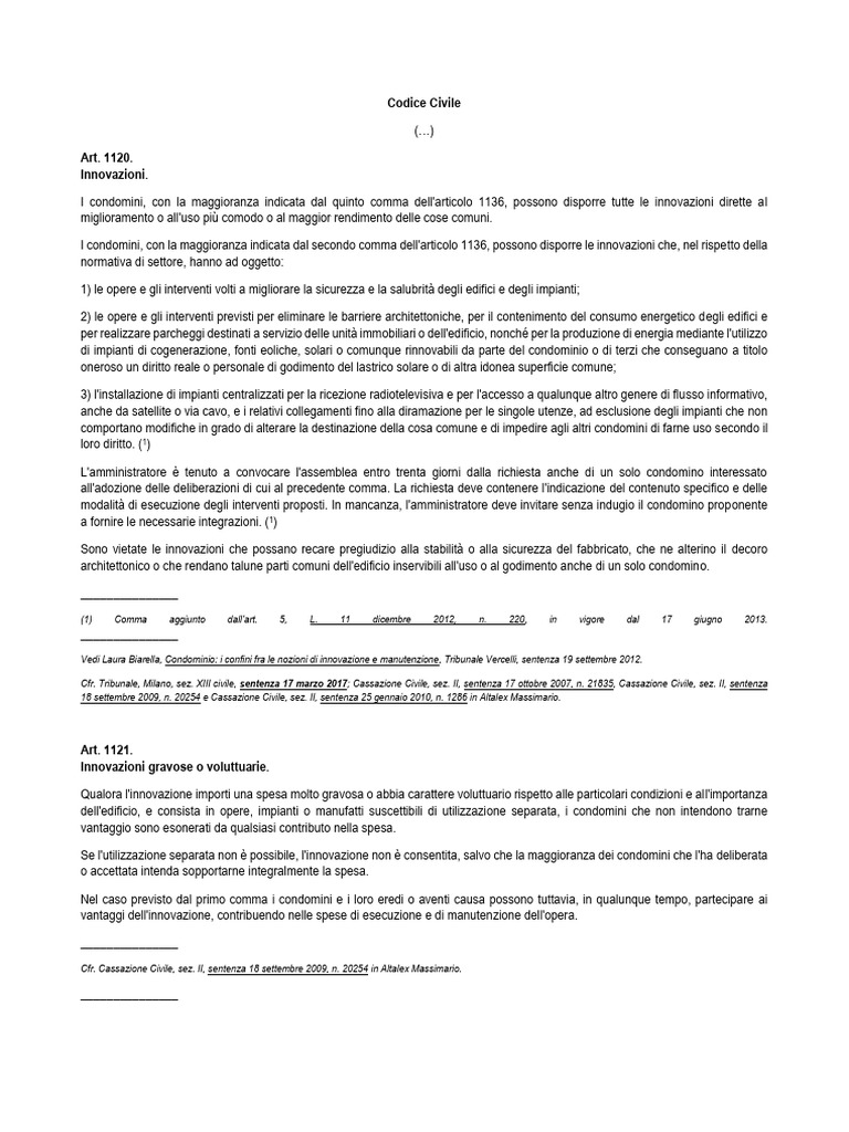 Vedi Laura Biarella, Condominio: i confini fra le nozioni di innovazione e manutenzione, Tribunale Vercelli, sentenza 19 settembre 2012.